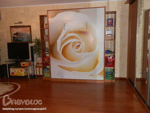 Интерьерное решение гостинойКак вариант совмещения гостиной со спальней - откидная кровать!