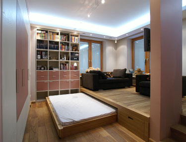 Такой вариант мне даже больше нравится, чем откидная кровать)) супер!! лишь бы потолки позволяли а не будут ли следы от колесиков на лавина те оставлять царапки/полосы? Такие готовые решения купить можно (я о самой кровати)? Или надо искать конструкторское бюро, которое индивидуально изготовит кровать, рассчитает необходимое число колесиков и тд))