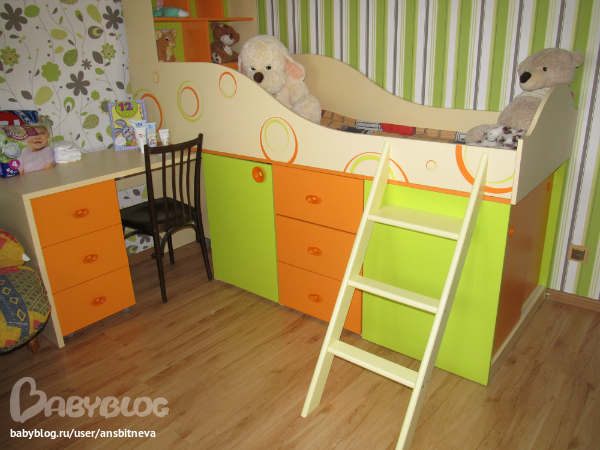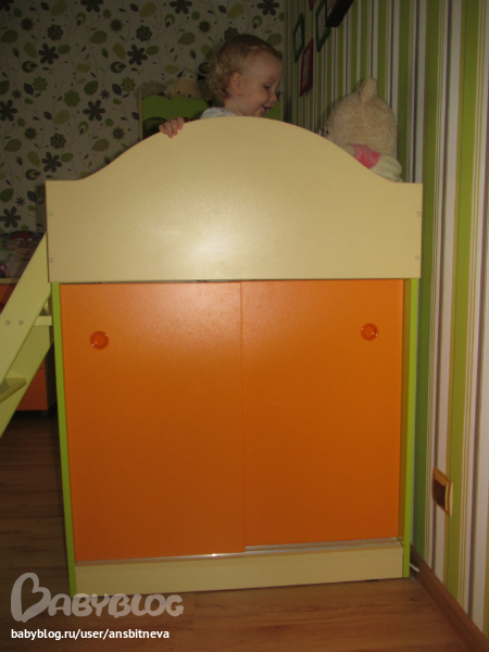 да, сейчас ей 4г., а вот в 3г. они там, где лесенка, еще кусок дсп на ночь засовывали, чтобы не вывалилась, т.е. крутится по кровати