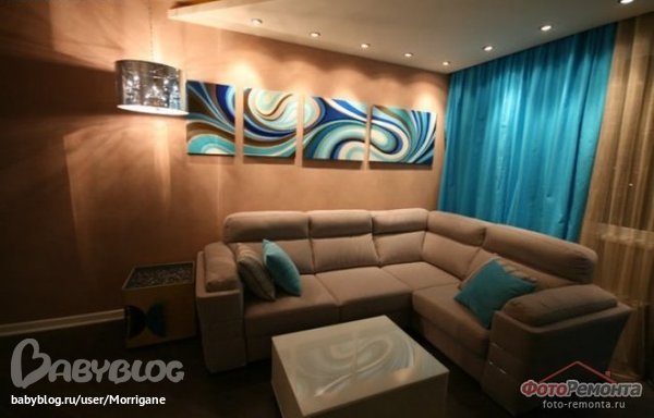 ну и на диван кинте пару глянцевых гол. подушек под цвет потолка.