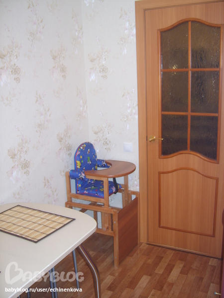 Линолеум, кстати остался от прежних хозяев - не фонтан, но пока сдирать и отделывать как мне хотелось бы, плиткой, например - нет возможности. Обои на фото не очень достоверными получились - на самом деле на них чуть заметнее цветы розового цвета...