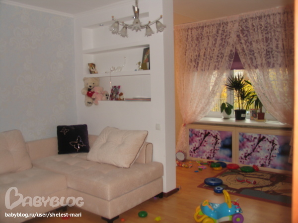 а скажите,сколько метров у вас комната?У нас хоть 2 ком.квартира,но живём мы в одной комнате.Я хочу сделать как у вас.