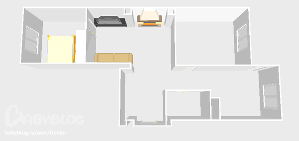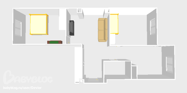 Планировка и расстановка мебели рассчитывалась вот такая: