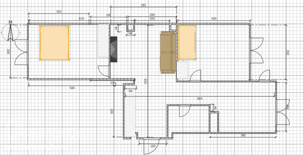 Это общая комната: Белые плоскости - это встроенные шкафы.