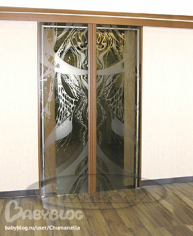 я себе развижную межкомнатную дверь заказала в Рониконе. Вставки из акрила + обрамление из ДСП.