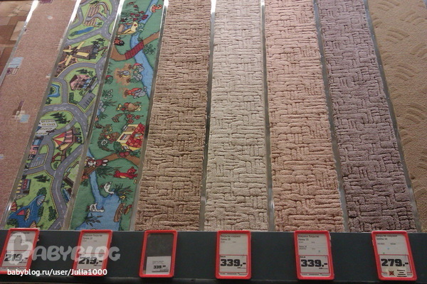 И еще вопросы. Я хочу светлый ковролин, не белый, но довольно светлый, может, бежевый, но не темнее, т.к. у мебели боковины цвета венге, фасады - имитация древесины что ли. Есть диван белый с бежевым. В общем, хотелось бы что-то нейтральное и светлое. Как такое светлое покрытие в уходе? Слишком быстро пачкается? Может, что-то посоветуете по наличию или отсутствию рисунка, длине ворса и по остальным параметрам? Хотим застелить пол в гостиной, т.к. ребенок все время на полу играет, сейчас у нас коврики-пазлы и одеяло, от пестроты которых я уже устала, да и все равно они не весь пол закрывают.