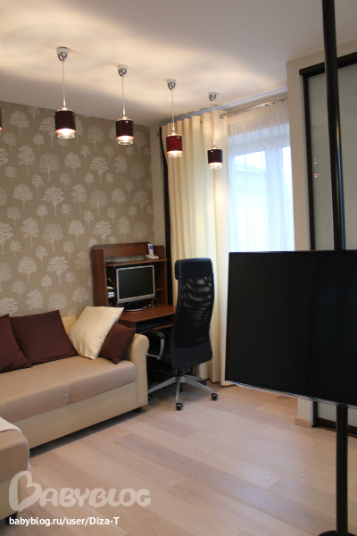 Всем добрый вечер, вот и наступило воплощение. Кому интересно, проект в дневнике(Октябрьское поле).Помещения не большие, поэтому фото издали не удались, вернее их просто нет. Здесь вы увидите детскую из Икеи, мою гордость - заказной шкаф с потайной дверью, который обажают дети.И ТВ в гостиной на штанге ( отличная вещь, возьмите на заметку).Может и не я это придумала, ведь все давно изобретено :), но главное - правильно применить.Все шкафы сделаны на заказ, и даже кухня.