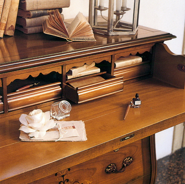 2) Вот это современная модель секретера итальянской марки Faber (возле Виченцы есть городок Bassano del Grappa). Внутри у секретера сукно. Есть выдвижные большие ящики, которые напоминают скорее комод, чем секретер: