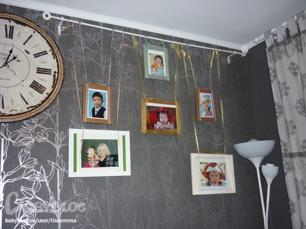 как развесить фоторамки, чтобы не дырявить стены-может кому пригодится такое решение