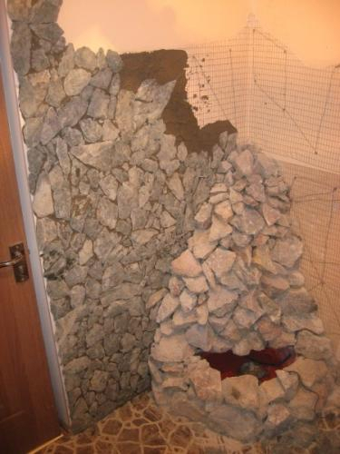Здесь, помимо декоративного камня на стене, альпийская горка, ламинат.