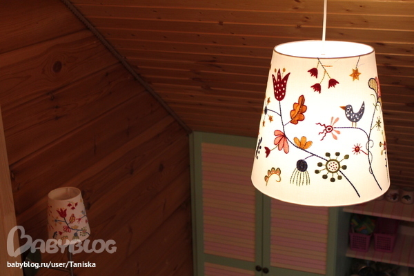 Освещение пока такое, но планирую поменять люстры на однотонные. Хочется чего-то более нежного чтоли... На стене вдоль лестницы на кровать-чердак еще есть настенные светильники.