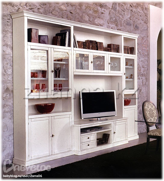 Вы готовы постоянно ст ряпкой бегать пыль протирак с кучи открытых полок. еще и все поднять надо чтоб под предметами протереть. Лично я бы искала что-то закрытое и где минимум полок. У моей мамы что-то похожее, она уже замучалась с пылью бороться)))