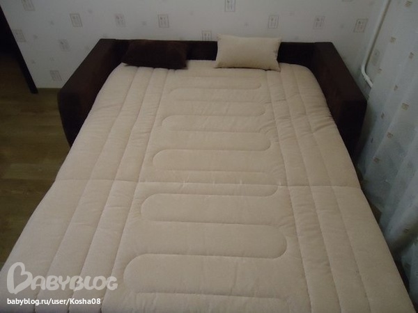 У нас тоже диван типа аккордеон, фабрика "Авангард". Спим уже 2 года, я довольна! Но он у нас стоит в разложенном состоянии постоянно, полноценная двуспальная кровать получается. Вот такой у нас