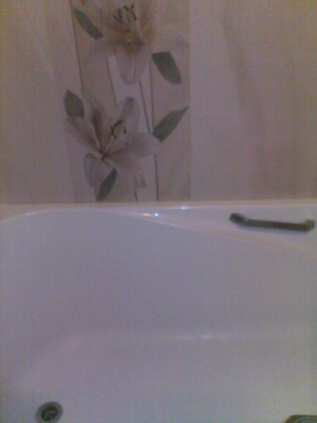 плитка прям на ванну положена (поставлена))...очень свет плохой, ни под каким углом не удается хорошо сфоткать...ну в принципе, я поняла, что без герметика на не обойтись, иначе будем соседей постоянно подтапливать.