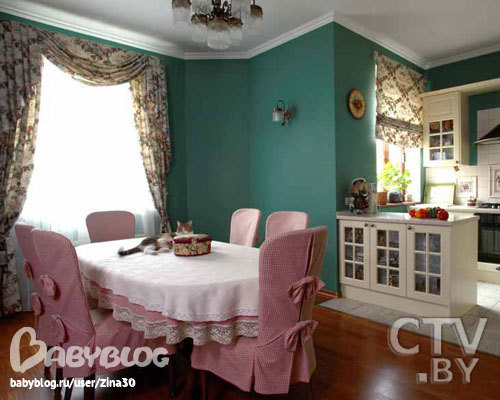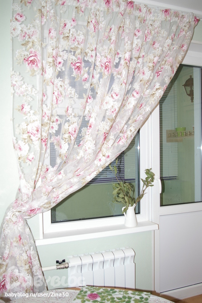 Не кажется ли вам , что их нужно подкоротить? Они прямо в пол, который ну никак не катит к кухне, зато на редкось очень практичный, и эти шторы делают его еще дальше от кухни. А может и так тоже сойдет?