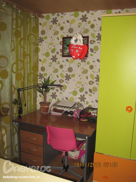Извините, ужас!наворотили всё что можно! кружочки, цветочки, полосочки! Такое ущущение кровать в коридор поставили детям! Вы говорите в том посте стол на полкомнаты, игровой зоны нет! Так мне кажется там её больше!!!! И самое главное, не обязательно дорогой ремонт!!! Можно дёшево, но со ВКУСОМ!!!