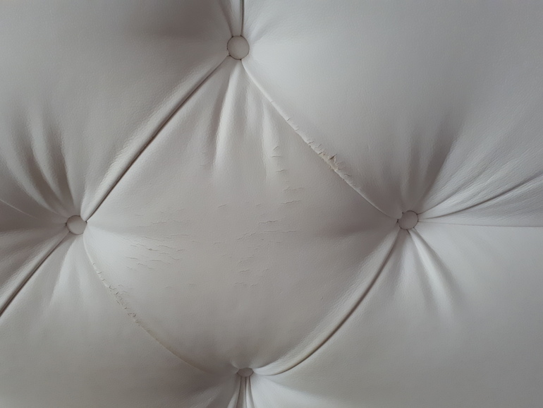 Прошло ровно 2 года с момента покупки кровати с изголовьем Моника. Экокожа белого цвета. Смотрите сами