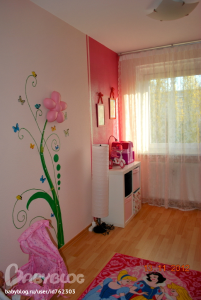 А это комната моей дочери, ей пока 5 лет,поэтом комната пока немного детская , но мебель для будущего.На кроватку планируется покрывало и балдахин,когда кроватка раздвинется.Так же на пол планируется ковролин,т.к пол мне кажется холодноватым.А ещё ближе к школе встанет писменный стол.