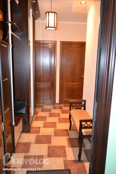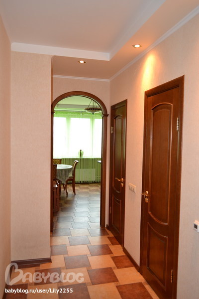 На полу плитка с подогревом. В коридоре сочетание коричневой с бежевой и орнаменты, а в кухню плавный переход коричневой с рыжей. Вот так. Вставляю фото, а сама так скучаю. Вот как неделю живём у родителей. Эта квартира уже продана и очень скучаю по ней. Плитка, а такая она там тёпленькая...я прям босичком ходила и детки в носочках всё время. А тут ламинат холоднючий и вот уже нежделю как детки с соплями.:((((