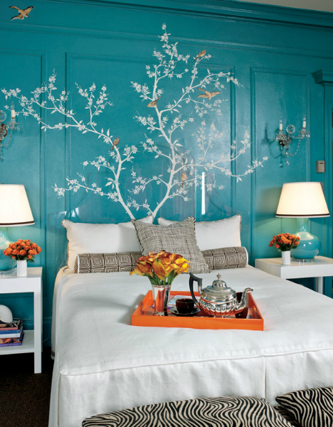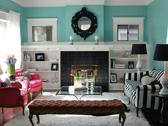 Сейчас, бирюзовый цвет входит в моду в области дизайна интерьера. Но, не многие могут решиться на такое смелое решение. Уникальность этого цвета в том, что он никогда не будет смотреться вульгарно, и при этом будет ярким и привлекательным. Его используют в интерьерах самого разного стиля. В классических вариантах бирюзой обрамляют рамы, используют в качестве фигурных рисунков на стенах.