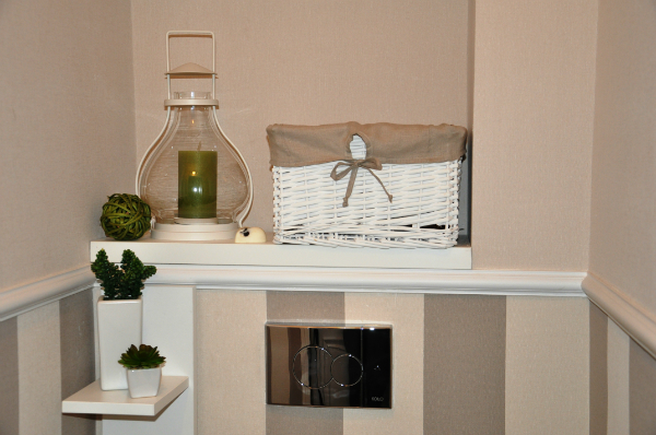 Здравствуйте, у Вас очень красивый туалет! Прочитала, что там поклеены обычные немоющееся обои, подскажите как они ведут себя со временем? И еще вопрос, на полу это ламинат или плитка такая? заранее большое спасибо