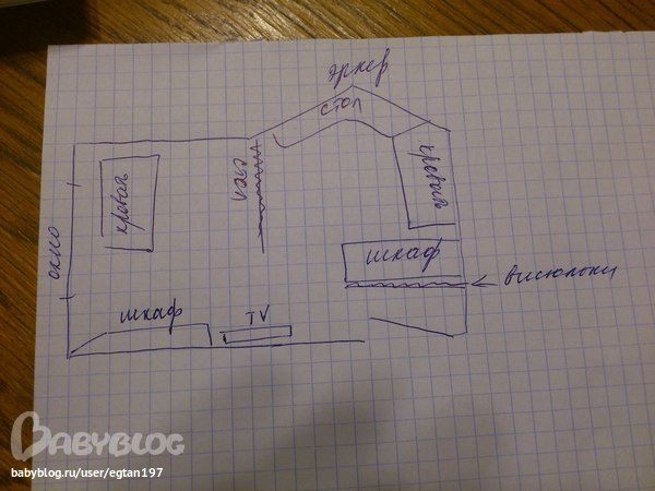 Хорошее решение. Вам проще, с двумя девочками)) Мне надо придумать решение для разнополых детей. Вот нарисовала от руки размеры комнаты, пропорции не соблюдены мною. Ссори за мой рисунок))