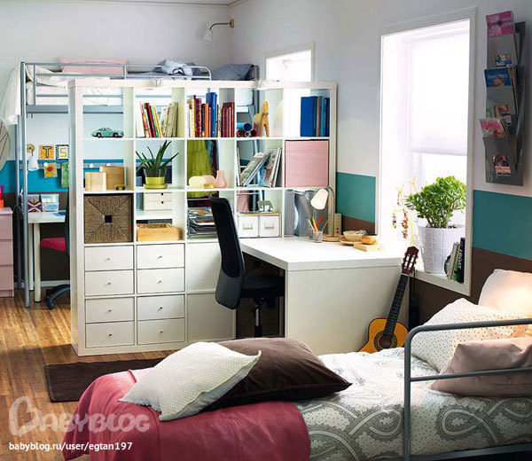 вот и у меня разнополые, ищу решение с разделением пространства на зоны для каждого отдельную... ниже вставила несколько фото с вариантами разделения комнаты.. можно воспользоваться идеями))
