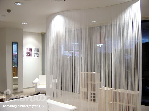 Ну вот я думаю, что шкаф, как отделение дочкиной кровати от двери, не подходит. Это будт жескач. Маловато места, мне кажется. Мне вот понравились висюльки, думаю надо типа таких, только не белые. Кстати, на фотке есть квартира сестры. они коридор с комнато объединили и повесили тюль. смотрите как все хорошо разделилось (сорри, что кверху ногами, не пойму как перевернуть)