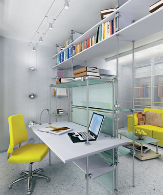 чтобы не утежелять зонирование, я буду использовать (как вариант) Икеа стеллаж Экспедит. и функционально, и разделение пространства
