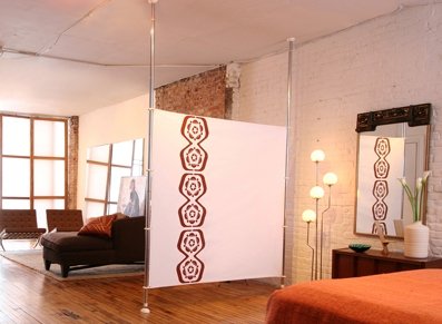 Так вот я и хочу зонировать пространство, чтобы было две территории, у каждого своя... Вот только перегородка должа быть очень легкой, чтобы пространство не скрадывало. А напротив двери может стеллаж какой поставить, чтобы зона второго ребенка не была уж очень открытой. Может что-то такого плана перед дверью?