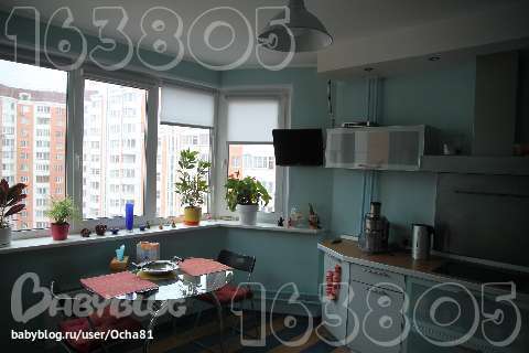Что ни говори, а кухня у нас все-таки шикарная, согласитесь?) Места много. Мы покупали не от застройщика, кухня была уже встроенная. Как входишь в кухню по правую руку расположена буквой Г. Практически во весь кухонный эркер - овальный стол. Холодильник стоял за дверью, но сейчас у нас за дверью стоит рабочее место комп-ра, в дальнейшем хотим его перебазировать в нашу комнату, ту, что с большим балконом (когда объединим). Вот как-то так.