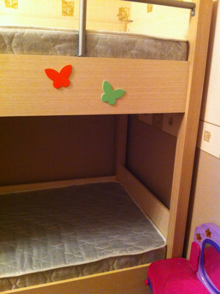и еще в качестве идеи к новому году - здорово будут смотреться висячие световые гирлянды на кровати. повесить в два ряда: снизу к краю верхней кровати, а для верхней - на перила. и детям счастье и комната к новому году готова!