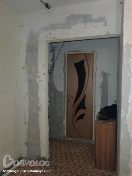 Думали с мужем убрать верхнюю часть проема, чтобы потолок был цельным, ну как бы не прерывался. Но передумали, т.к. спилить бетонную стену очень трудно, времени и сил уйма, я уже о пыли не говорю. Потом продумали вариант сделать арку, сделать чуть уже проем и закруглить вверху, но тут "специалисты всякие"начали отговаривать, мол из-за такой маленькой высоты не будет никакого вида у этой арки. А если делать хорошую высоту, то это опять таки пилить эту верхную часть....