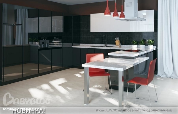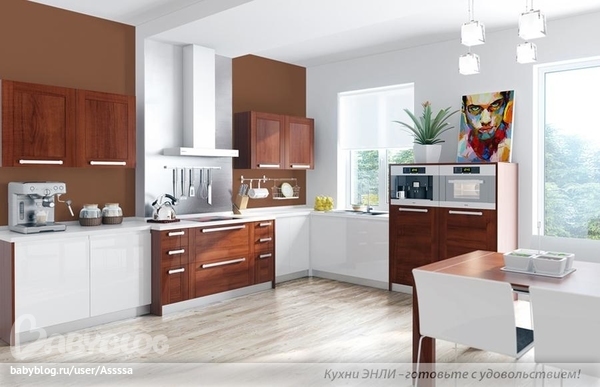 Интерьерное решение кухниДевочки, может у кого есть фотки темных кухонь с темным фартуком, но светлыми столешницами! У нас темно коричнвая кухня, столешница практически белая с вкраплениями бежевого, смотим стеновую панель темно коричневую (под цвет фасадов кухни) так как под столешницу подобрать нереально! Очень хочется глянуть как ЭТО будет выглядеть со стороны!))
