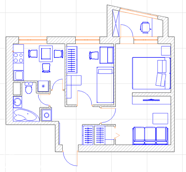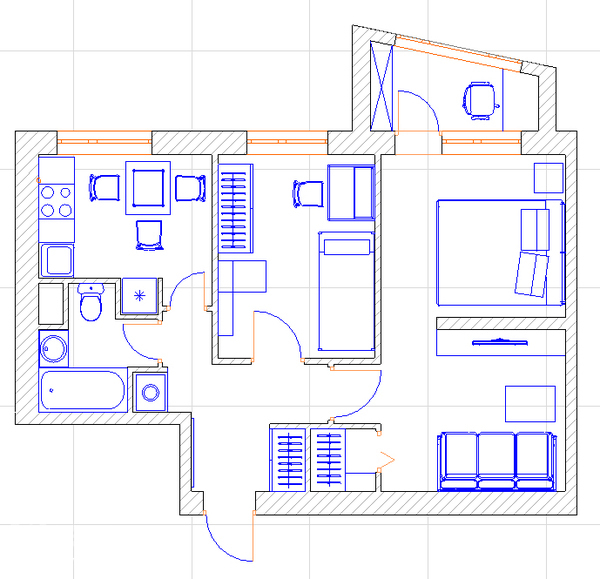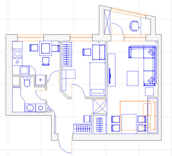 А неее. И так места мало. Пока мне из предложенного нравится последний вариант Вот этот. Внизу где стол и 4 стула (красным) откидная кровать. Типа такой (первая попавшаяся картинка в нете) Кать, а как у тебя в кухне все размещено? Туалет с ванной соеденить хотим, тк по другому туда машинку стиральную не впихнуть.. Вроде нравится мне все, но чего то как то не хватает. Шкафов, наверное, маловато, вообщем не знаю...вот всю голову сломала.