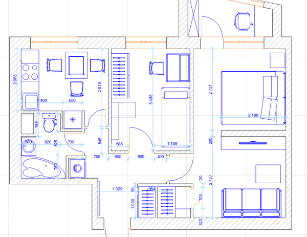 Да, вот то что шкафов мало, а вещей у нас много...это да :) И на кухне катастрофически мало :((, но посудомойка тоже нужна..  На нижней картинке стол и стулья убираются..(когда раскладывается кровать) вот только куда пока не знаю :) Да и про саму кровать откидную еще надо думать.. Спасибо! будут идеи пишите!