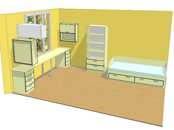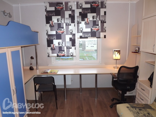 У нас столешница вдоль окна, мы очень довольны, но мы делали комнату для двоих мальчишек . Это очень удобно, мы балдеем, но вот не знаю, делала бы я так для одного ребенка.