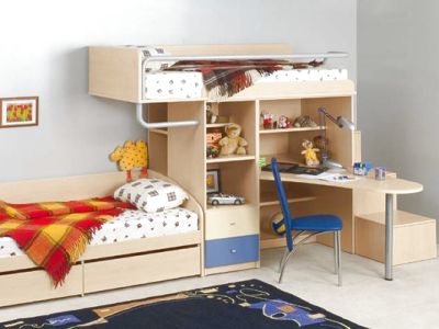 Тем более, если у вас маленькая комната, я бы не стала ее загромождать такой громоздкой мебелью, она на картинке смотрится аккуратнее, в комнате все равно много места займет. Да и кровать-чердак все равно не очень удобно в том плане, что к ней надо бы еще диванчик какой прикупить - друзья к сыну в гости придут, сам он поваляться перед теликом захочет, книжку ему почитать - сидеть-то больше негде будет, не наверх же лезть каждый раз. Это сейчас у вас ребенок увидел и загорелся, через год-другой ему тоже жутко надоест каждый раз по лестнице туда-сюда мотаться.
