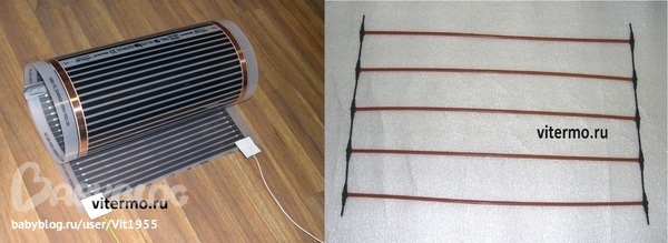 Греющая пленка (очень много вариантов исполнения по ширине, мощности, расположению греющего элемента) и стержневой карбоновый мат более надежны в эксплуатации. Например, если повредить кабель, то вся система перестанет работать, если повредить пленку или стержневой мат, то выйдет из строя только поврежденный участок, вся остальная система будет работать. Стержневой мат предназначен для укладки в стяжку или плиточный клей (под плитку), греющую пленку можно укладывать под любое напольное покрытие, правда под плитку монтаж будет довольно сложный, зато под ламинат, линолеум и проч. монтаж очень простой и теплым полом можно начинать пользоваться сразу после монтажа напольного покрытия (кроме случая монтажа под плитку), т.к. монтаж выполняется насухую.