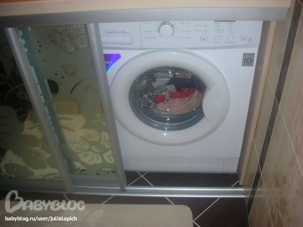 Машинка 45 см, но нужно учесть, что для дверей купейных система крепится на полу и под столешницей, а оно около 7 см где-то, это вот место уже занимает, да и за стиральной машиной пару см для шланга нужно оставить , ну и ширина 45 см считается без дверцы машинки, а это еще + несколько см, вот и получаем, что под столешницу 60 см ( у нас именно такая ), нужна машинка не более 45 см глуюиной.
