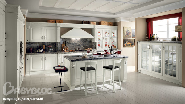 Интерьерное решение кухниЕсть кухня столовая 4-5, 20 кв. Места море!!!! кухню хочу светлую классику, ставить буду по двум стенкам углом т.е это 9м!!!!!!!!! я ростом 1,6 а муж 2метра, вот вопрос реально ли спланировать красивую кухню без верхних ящиков, если повесить что б доставала я (Главный пользователь) то муж бьется головой, если повесить выше, я достаю только до нижнего ряда вверх только на стуле или в прыжке!!!!!! Ну и что говорить вся техника внизу(мультя, хлебопечь, комбайн)