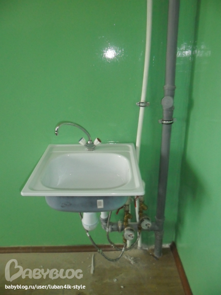 Мойка и смеситель тоже самые обычные, уже пожалели что сэкономили на этом. Счетчик газовый пока так и оставили за холодильником, в близжайшем будущем переварим его.