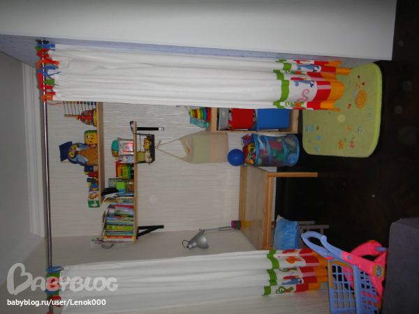 Шторам таким точно нет.однотонные.тюль нужна двухцветная, один тон яркий. Связать бы все это дело текстилем на полу и покрывалом на диван и подушечками декоративными.в вашем интерьере чужеродным смотрится дерево другого цвета,например табуреточка из икеи и детский столик.я бы перекрасила бы в белый,и поменьше мелочей на виду,вот вы правильно шкаф закрыли с полками текстилем,лучше дверки конечно,но за неимением лучшего и это неплохо.,но текстиль не коррелирует со стенами с рисунком и со шторкой в детском уголке,я бы поискала бы интересные ткани и сшила бы на заказ все в комнату,и подушки и шторы и покрывала и детские шторки,тогда будет единый ансамбль.