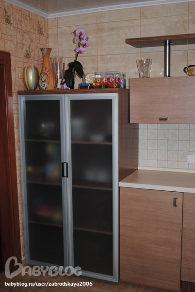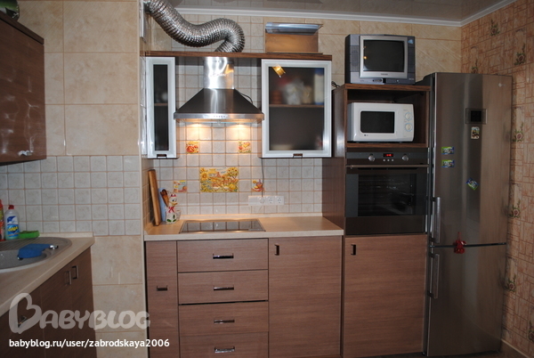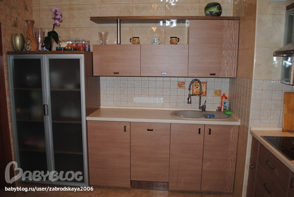 Интерьерное решение кухниКупили мы нашу квартиру 2 года назад. Но переехали только после рождения дочки, и то не сразу. Живём в ней уже 3-й месяц. Ремонт толком не делали. Сделали только кухню, и то обои не меняли, в спальни поставили гардеробную, в холе шкаф-купе и прихожую. Пока показываю кухню.