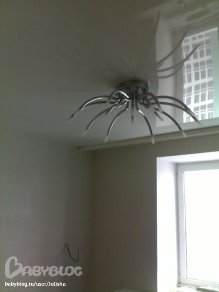 У меня наоборот. Потолок белый, ровный. И не "давит". Сын говорит, что даже кажется выше