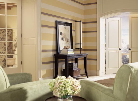 Полоска, особенно круаная, опасный вид декора. Перетягивает на себя все внимание, многие предметы на ее фоне теряются.