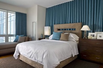 занавески из органзы повесьте молочные ,коралловые... посмотрите в нете много спален белых.... постер типа ночной город в изголовье....освещение добавьте... кровать и темная мебель грубят....сменить бы их....