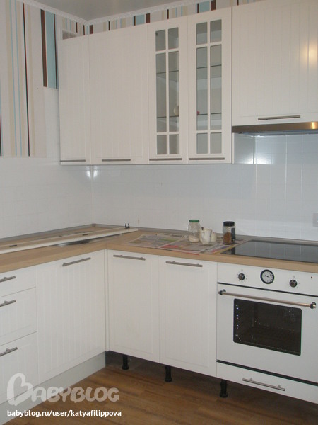 ой, вам спасибо за комплимент. У нас столешница ИКЕЯ, не знаю как она будет в деле, но пока заметила, что она ребристая, всякие мелкие крошки с нее не очень хорошо будут сметаться. Хотя не знаю, пока сметала с нее только строительную пыль))