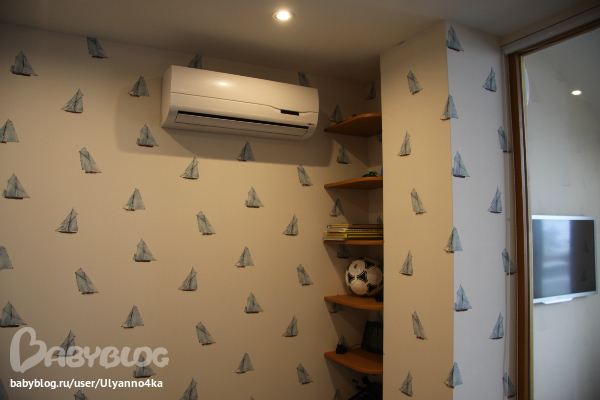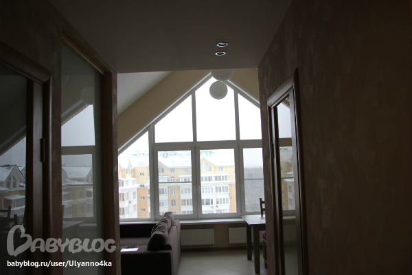 Так как в квартире всего одно окно стена в детвкую практически вся стеклянная,также и стекло поставили на втором этаже, все в будщем будет закрыто занавесками(в десткой-римские шторы а на втором этаже-рулонки-блэкауты)