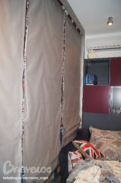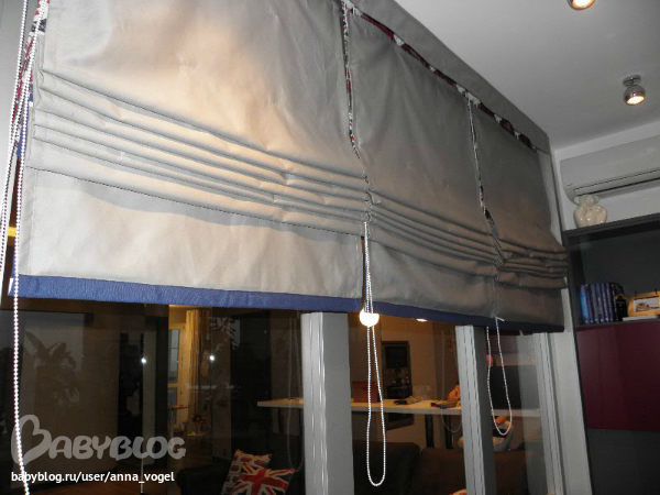 обратная сторона римских шторок- подкладка скрывает подъемный механизм. точечно крепиться к основе с помошью липучки.